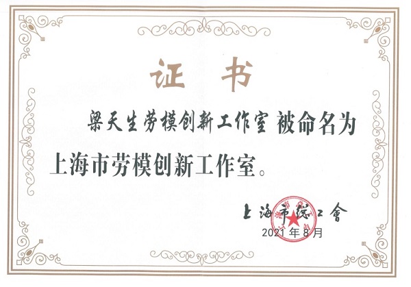 梁天生勞模創新工作室被命名為“上海市勞模創新工作室”
